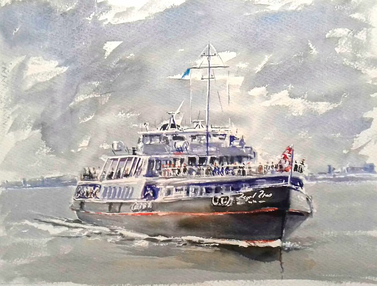 Oil painting, river Severn, from a black & white photo taken around 1890’s.